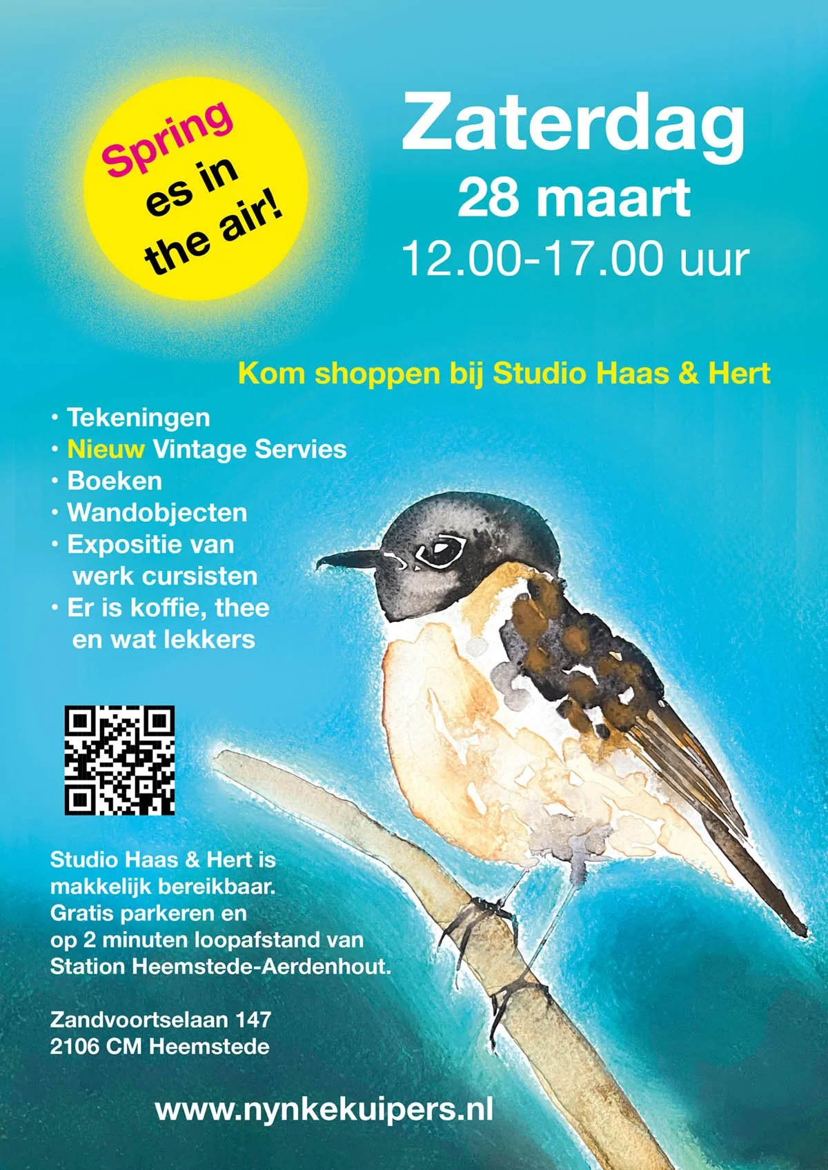 Op zaterdag 28 maart opent Studio Haas & Hert de deuren voor een gezellige shopdag vol kunst en creativiteit. Kom rondsnuffelen tussen unieke werken, laat je inspireren en neem vooral de tijd om even te genieten.
