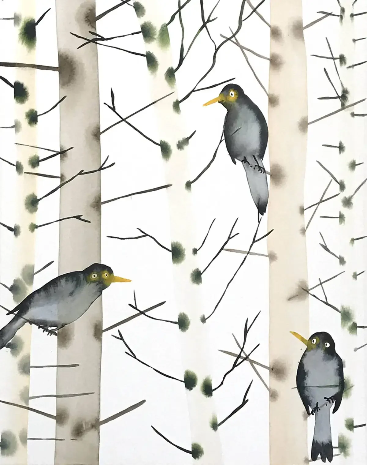 Blackbirds. 50 x 65 cm. 2021. Aquarel on Paper. SOLD