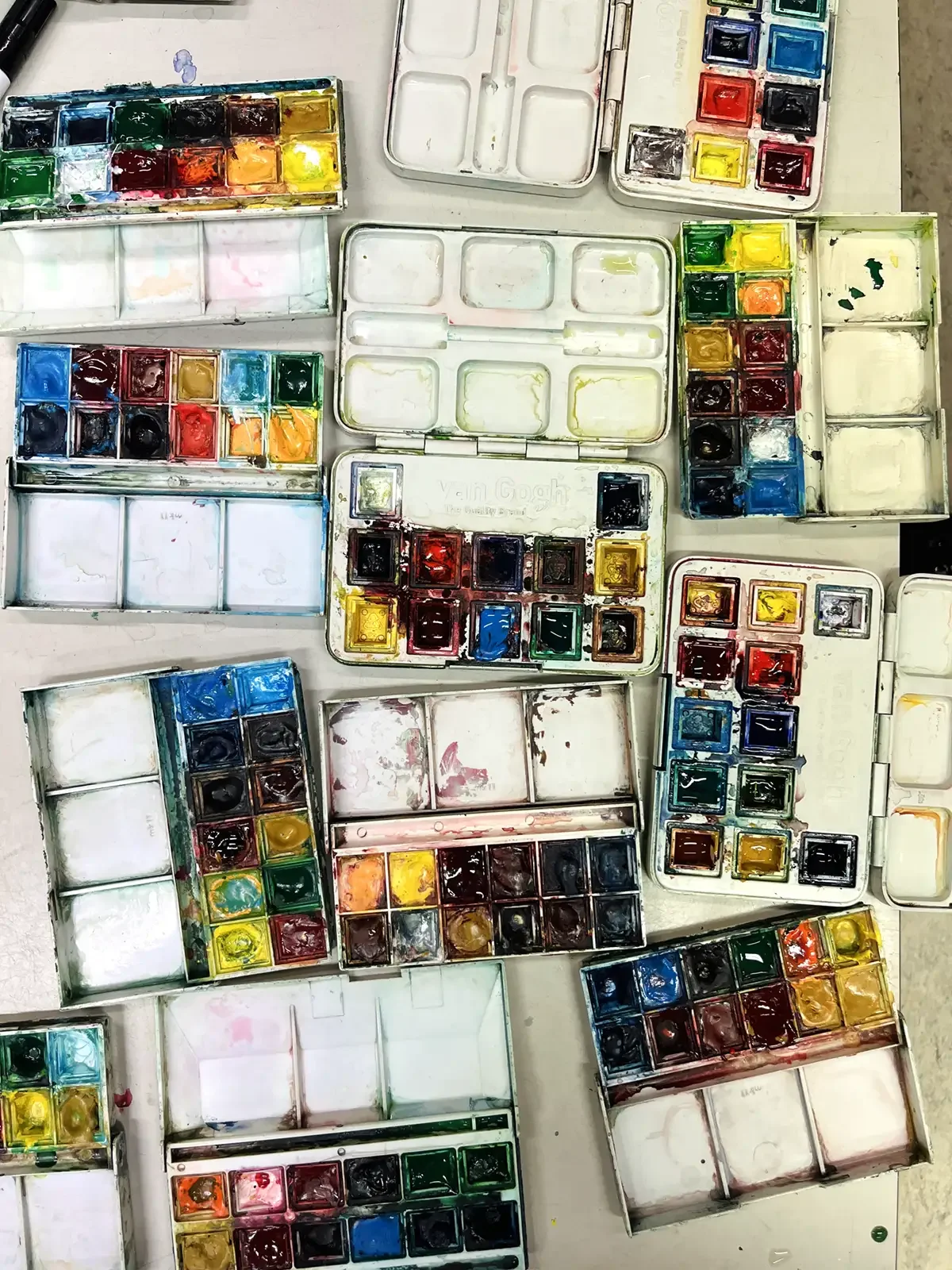 De cursus is inclusief alle materialen, koffie, thee, koekjes, bubbels tijdens de expositie en één ingelijst werk.