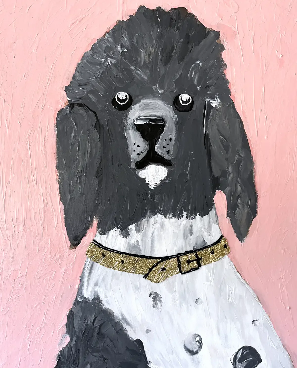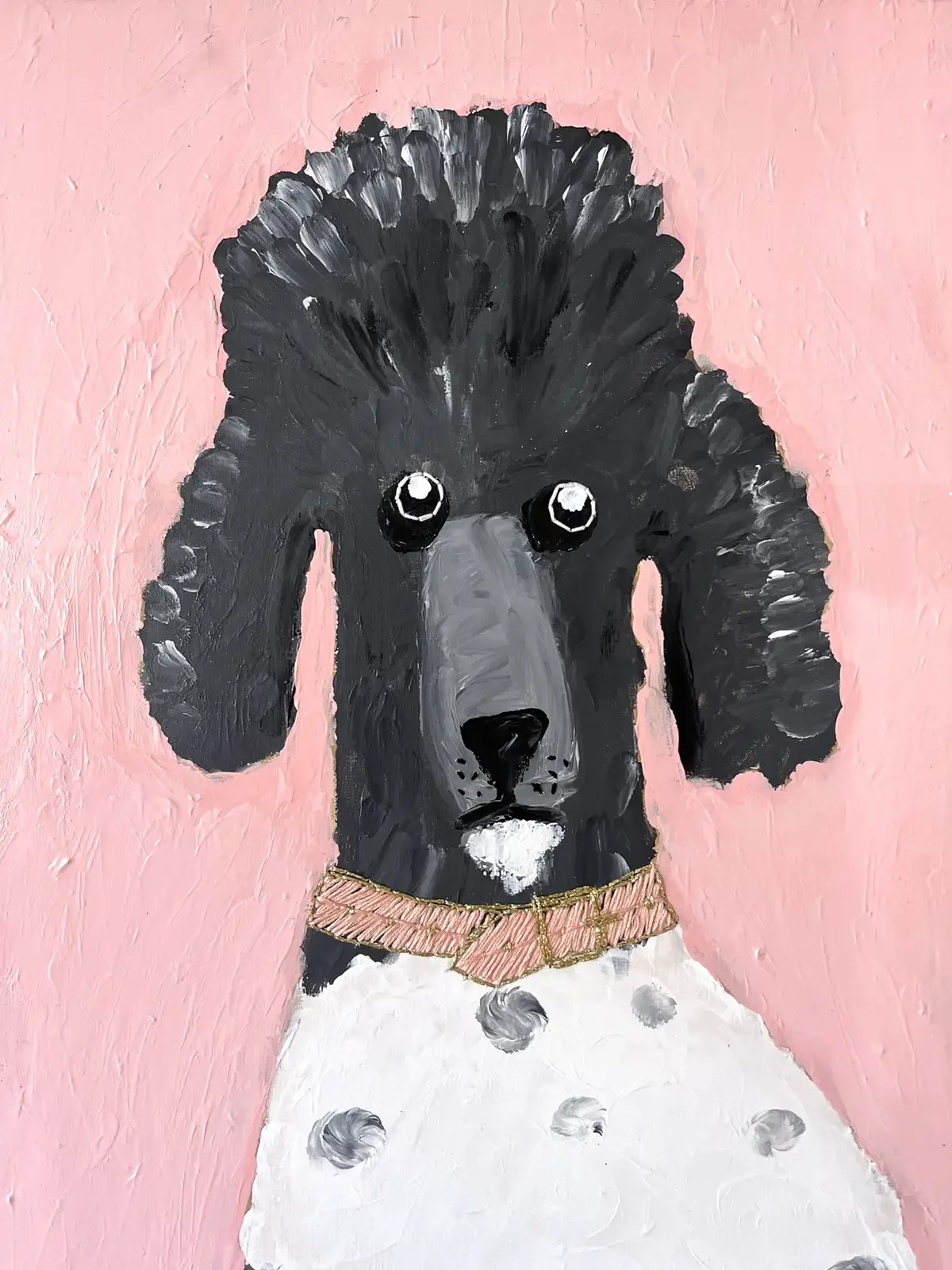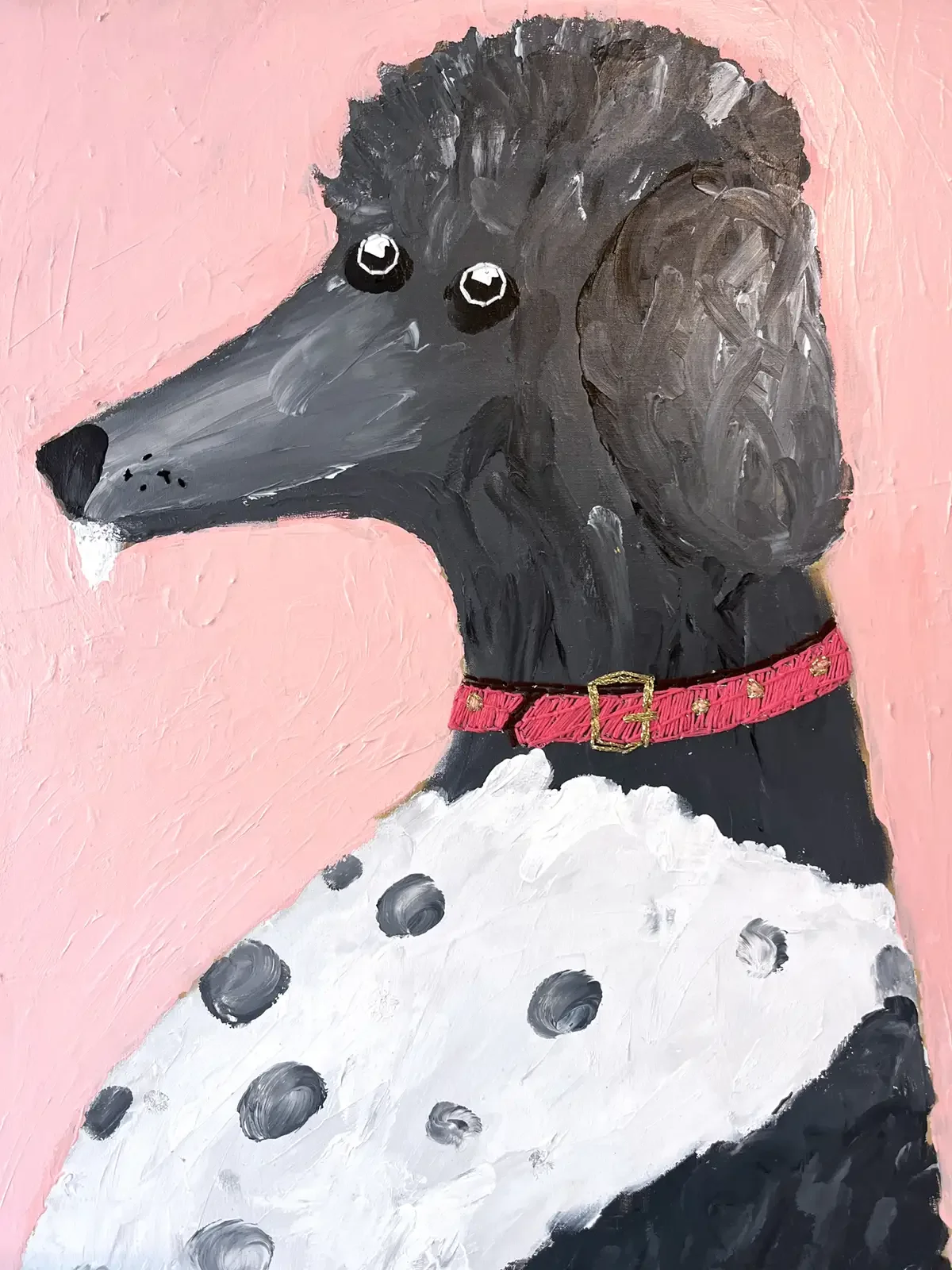 De collage nodigt uit tot reflectie over de dualiteit van een poedel met een permanentje en een wilde binnenkant.