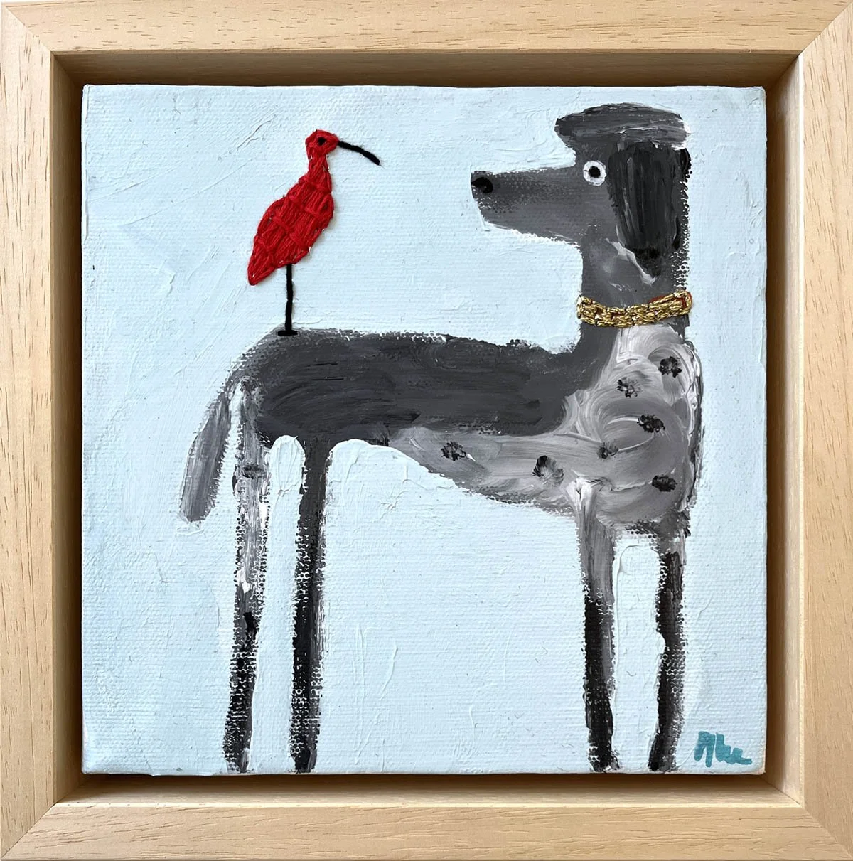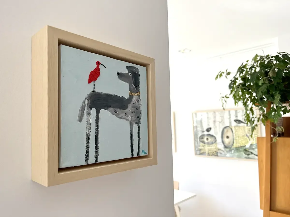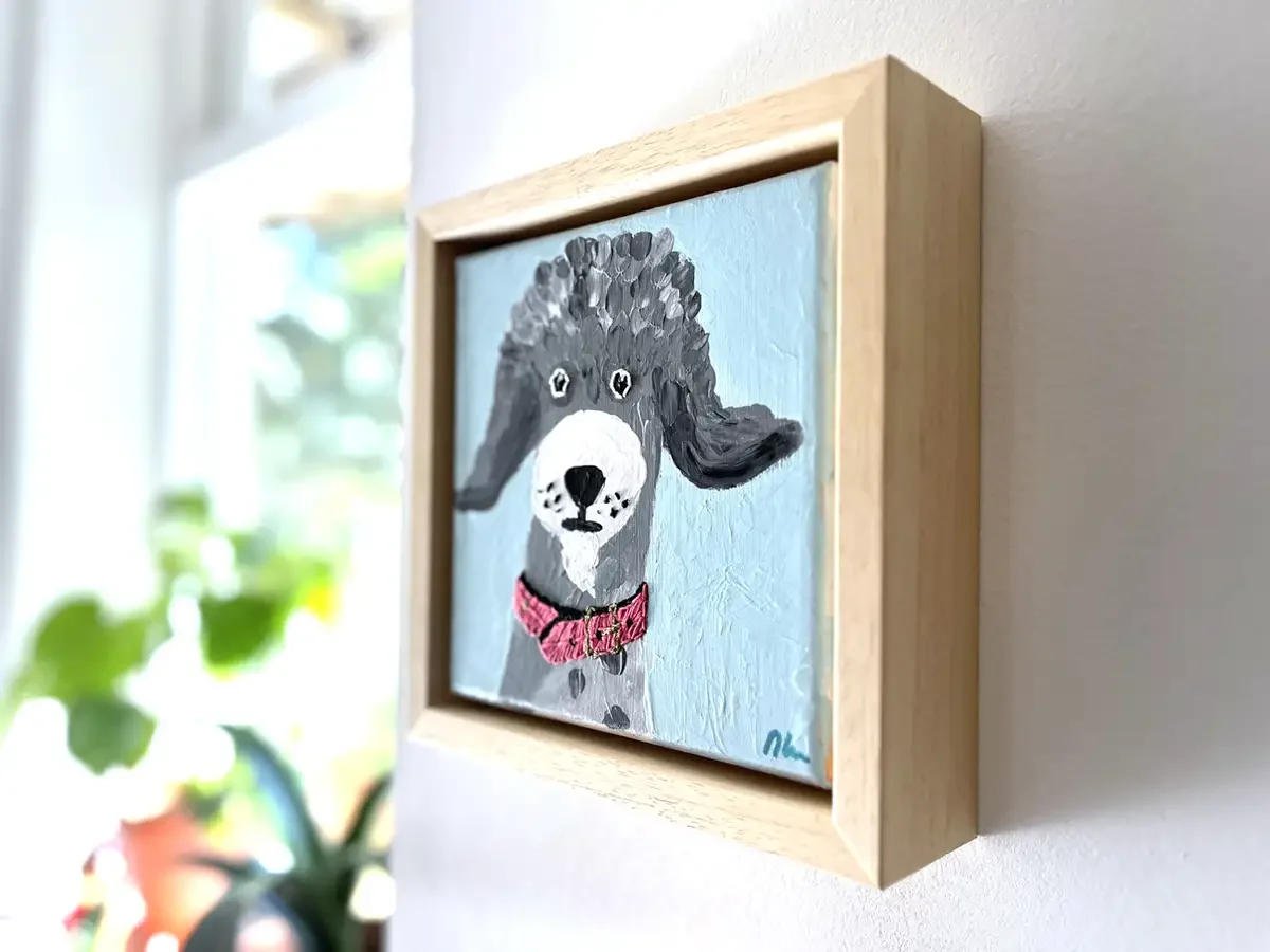 De collage nodigt uit tot reflectie over de dualiteit van een poedel met een permanentje en een wilde binnenkant.
